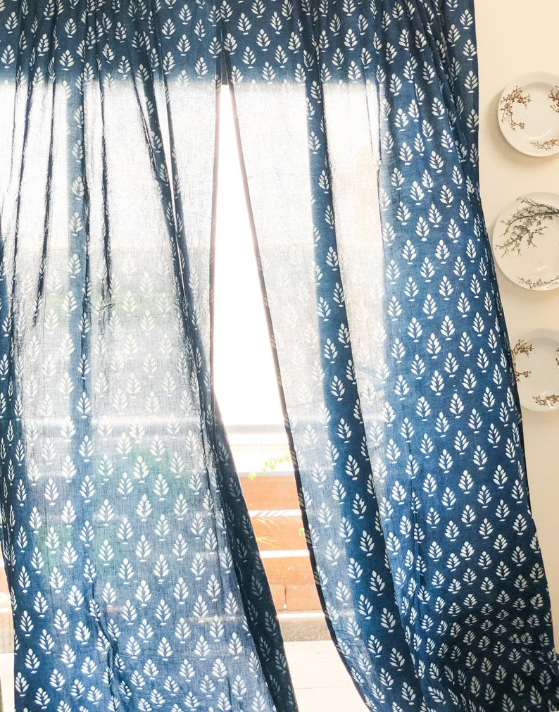 Cotton Hand Block Print Indian Booti Indigo color curtain