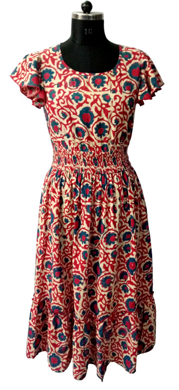 Cotton Printed Elasticated Dress with Bell Sleeve
