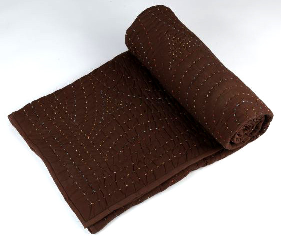 Cotton Round Circle Kantha Reversible Brown Throw