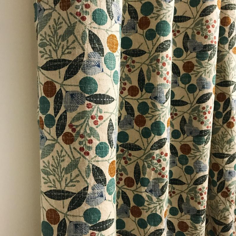 Linen Chembray Wased Printed Curtain