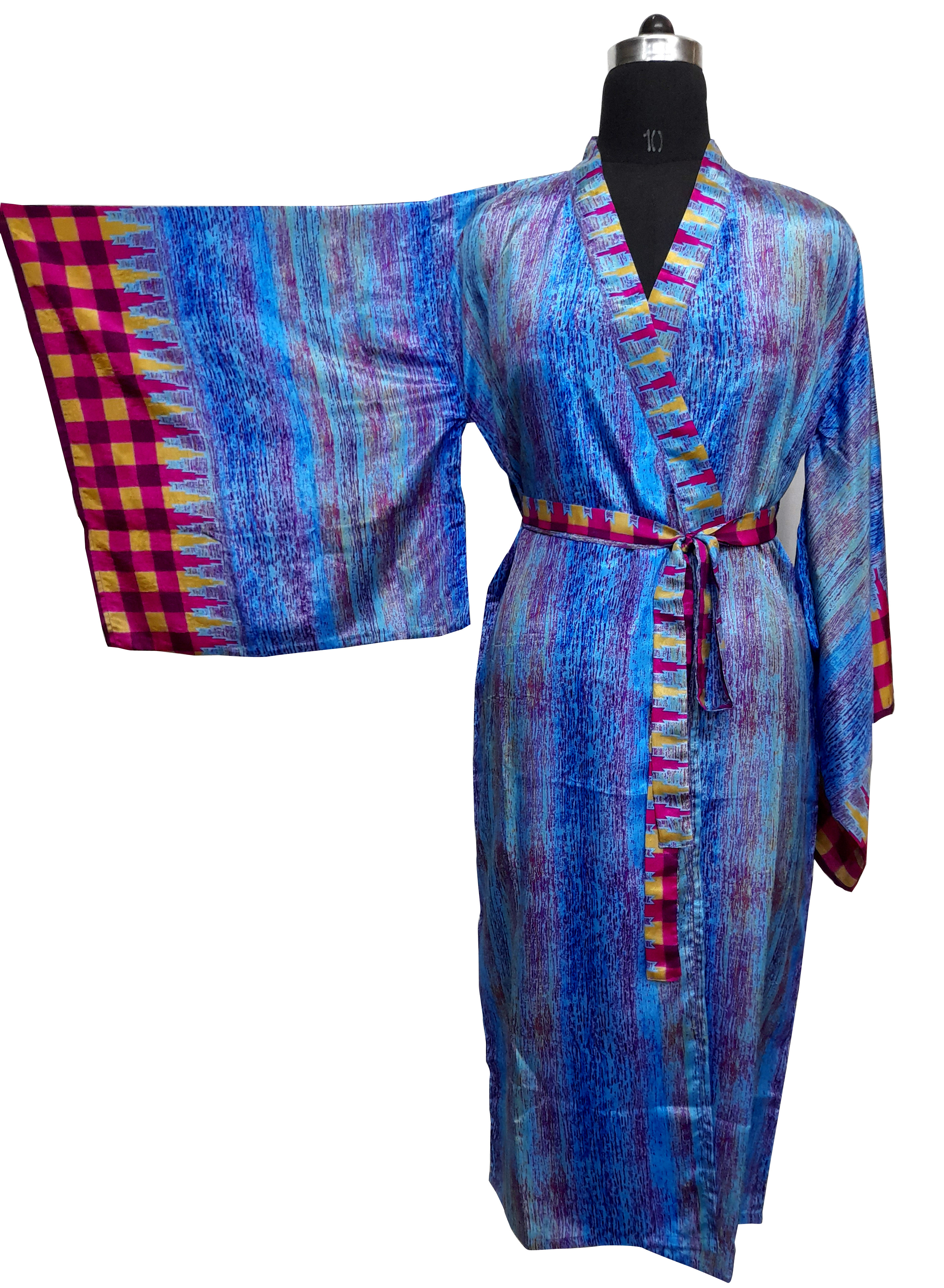 Lounge wear essentials with ethics . Stylish Kimono in Surplus silky blend fabric . Very Luxurious to Touch :)