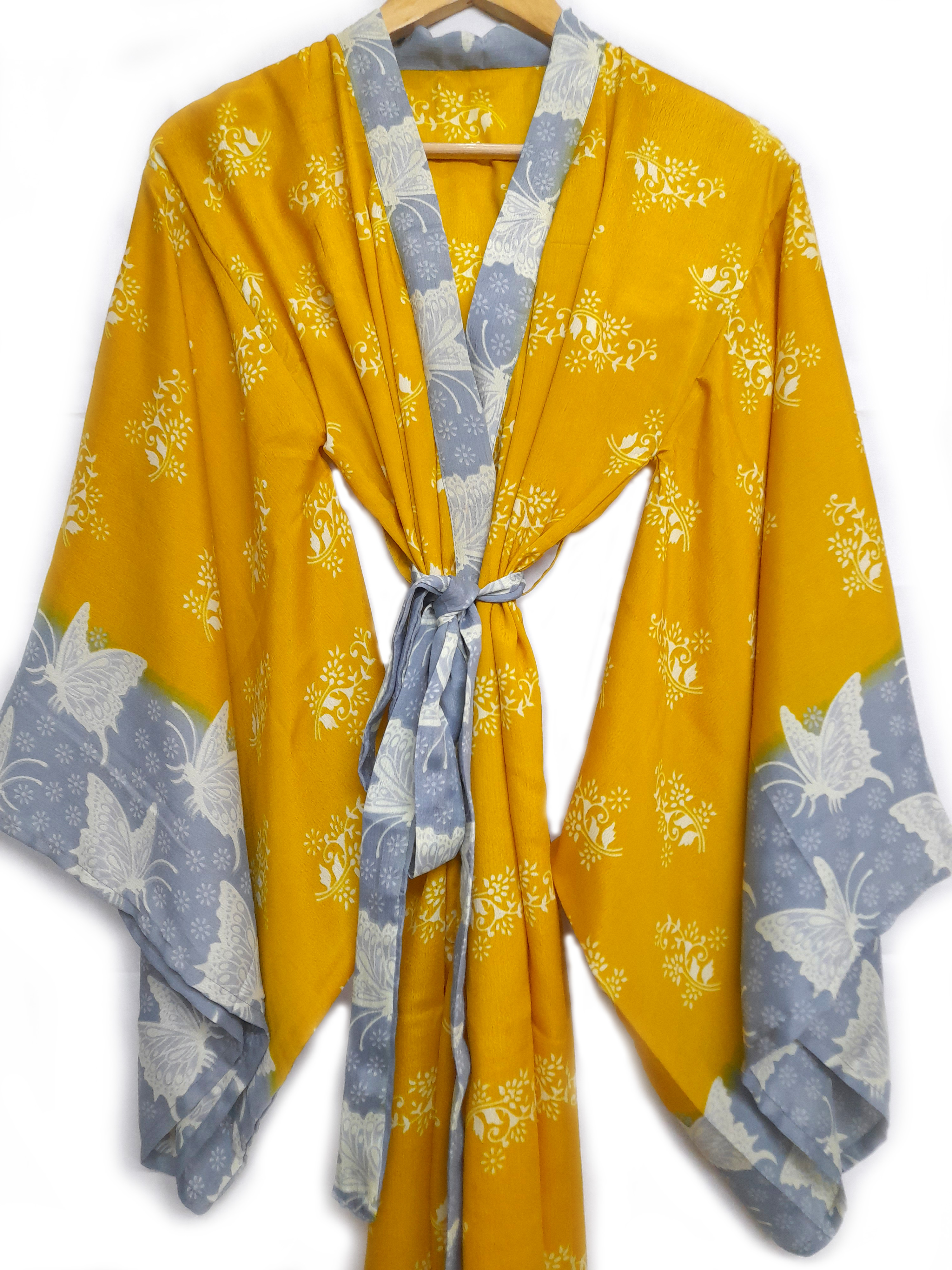 Lounge wear essentials with ethics . Stylish Kimono in Surplus silky blend fabric . Very Luxurious to Touch :)