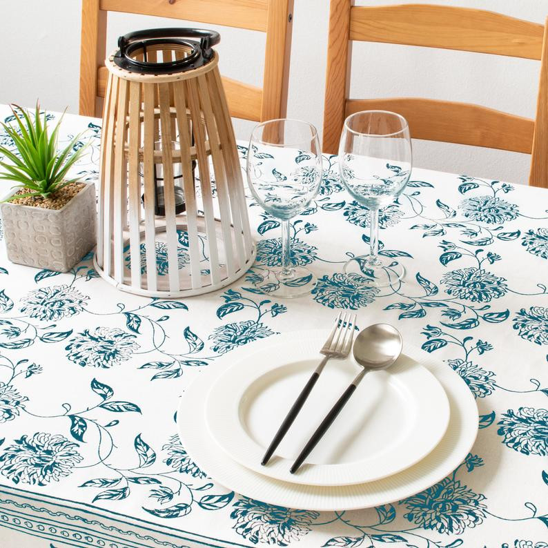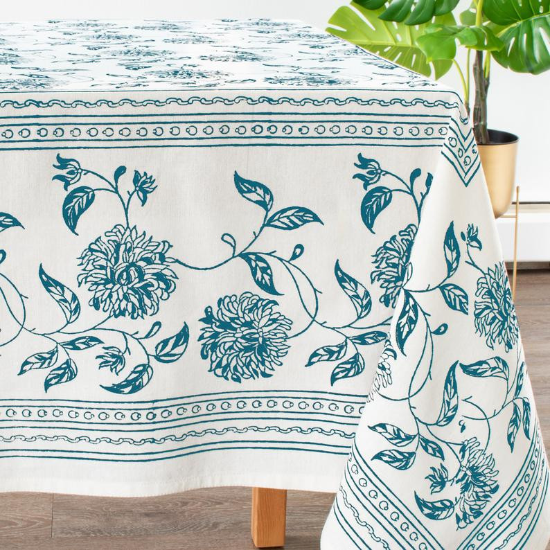 Cotton Printed Turq. Table Cloth