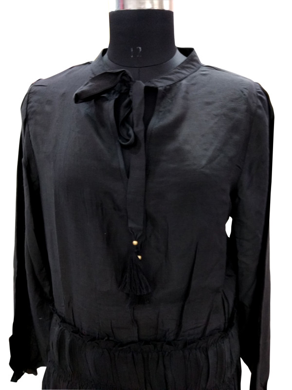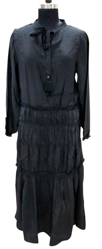 Cotton Silk Full Sleeve Long Dress Black