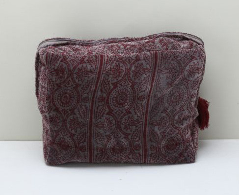 Cotton Velvet Printed Cosmetic Pouch Grey