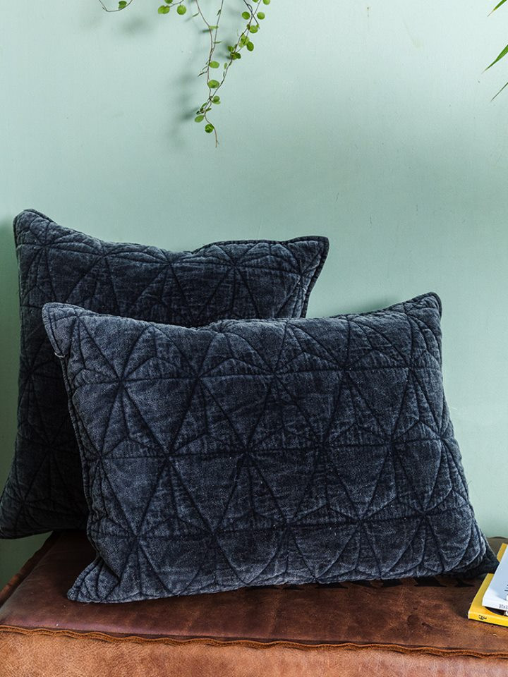Cotton Velvet Stone Wash Geometrical Pattern Quilted Rectangle Cushion Cover