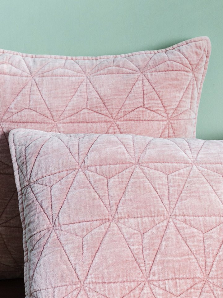 Cotton Velvet Stone Wash Geometrical Pattern Quilted Squire Cushion Cover