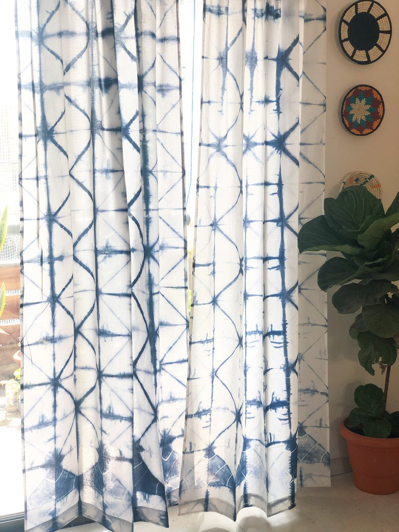 Cotton Voil Tie & Dye Shibori Indigo Color Curtain