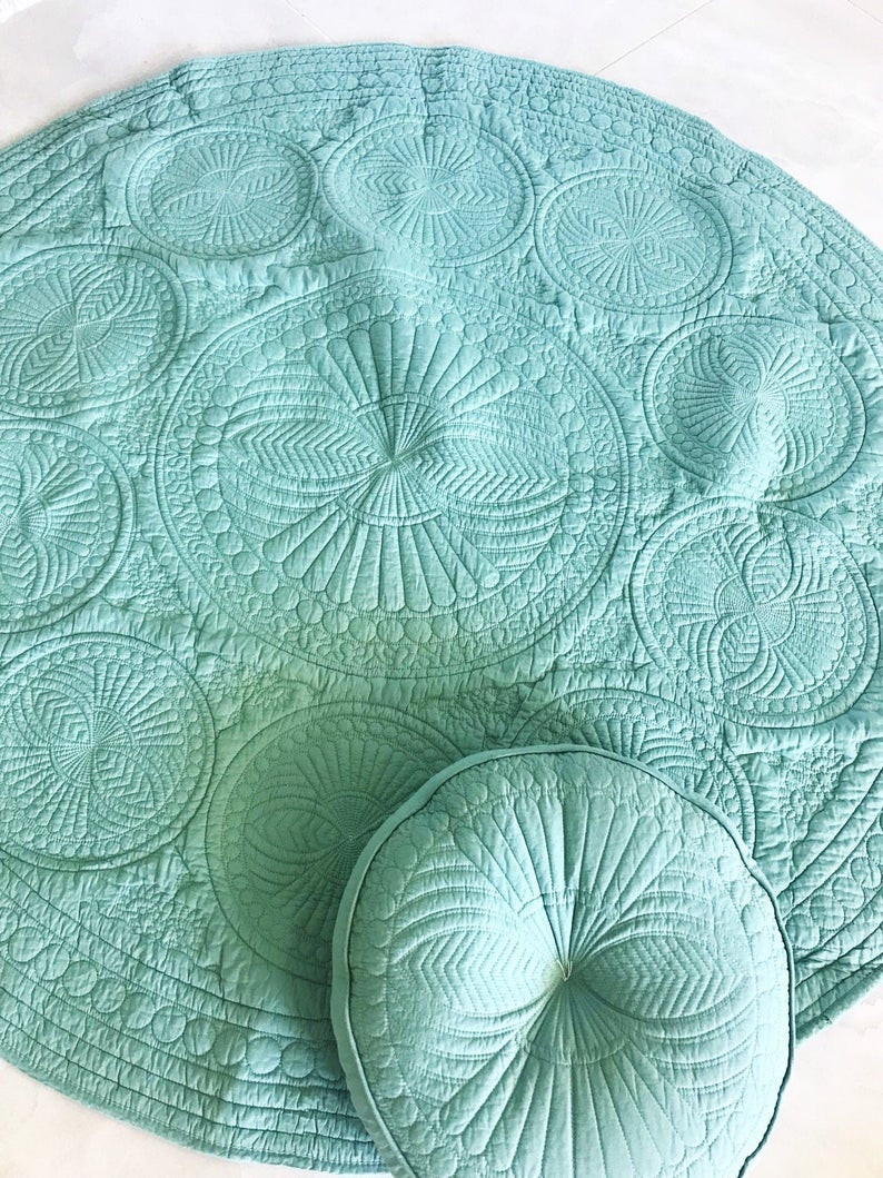 Kids Round Quilted Design Play Mat With Soft Fabric and filling