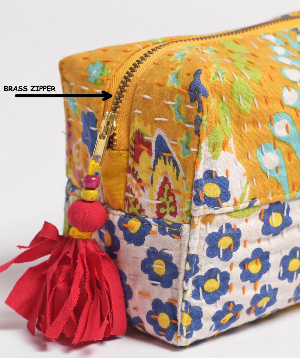 Vintage Cotton Kantha Cosmetic Pouch Yellow