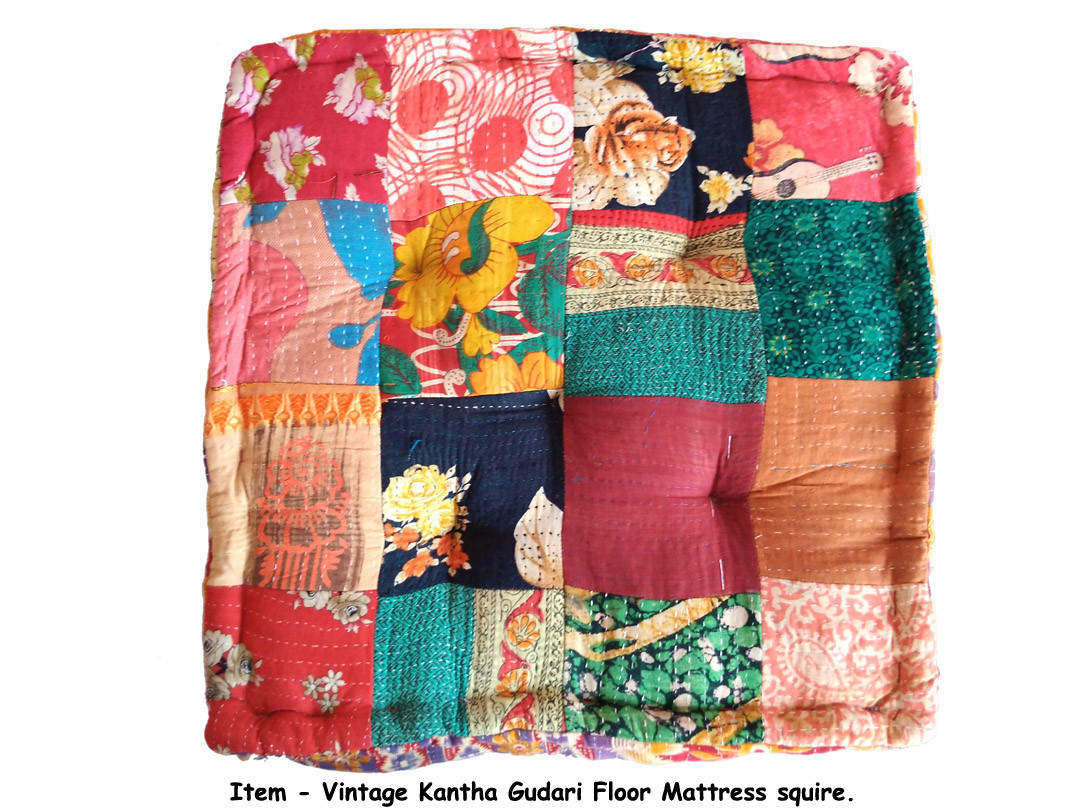 Vintage Cotton Kantha Gudri Patch Floor Cushion Cover