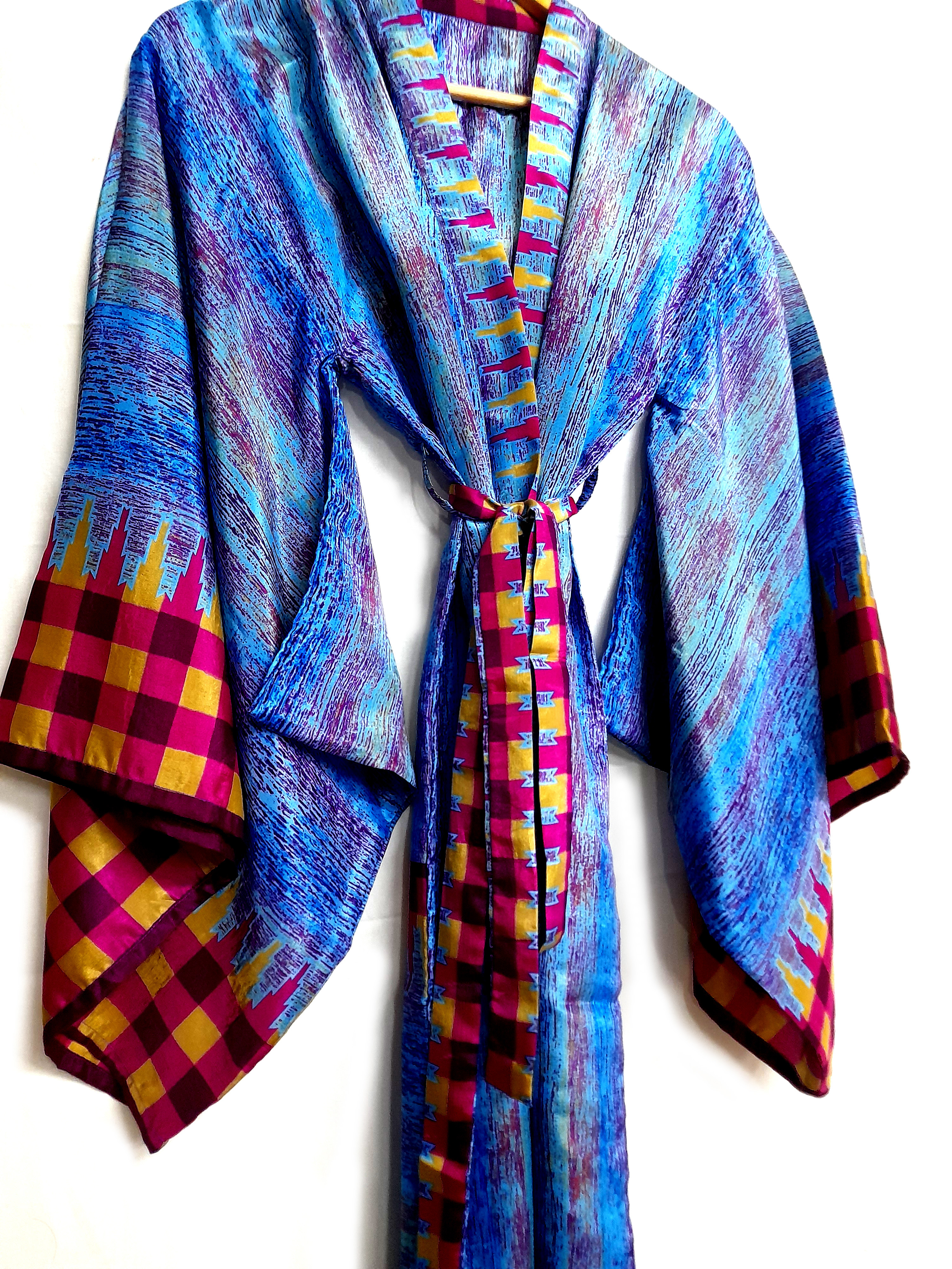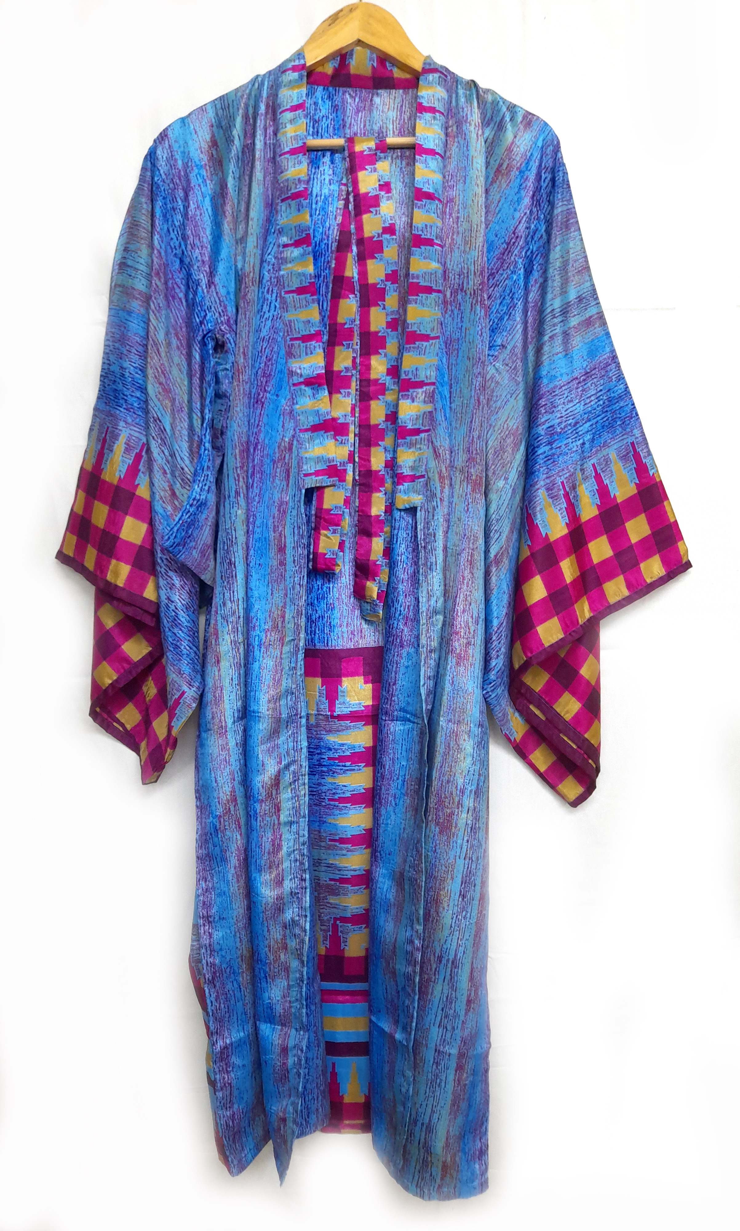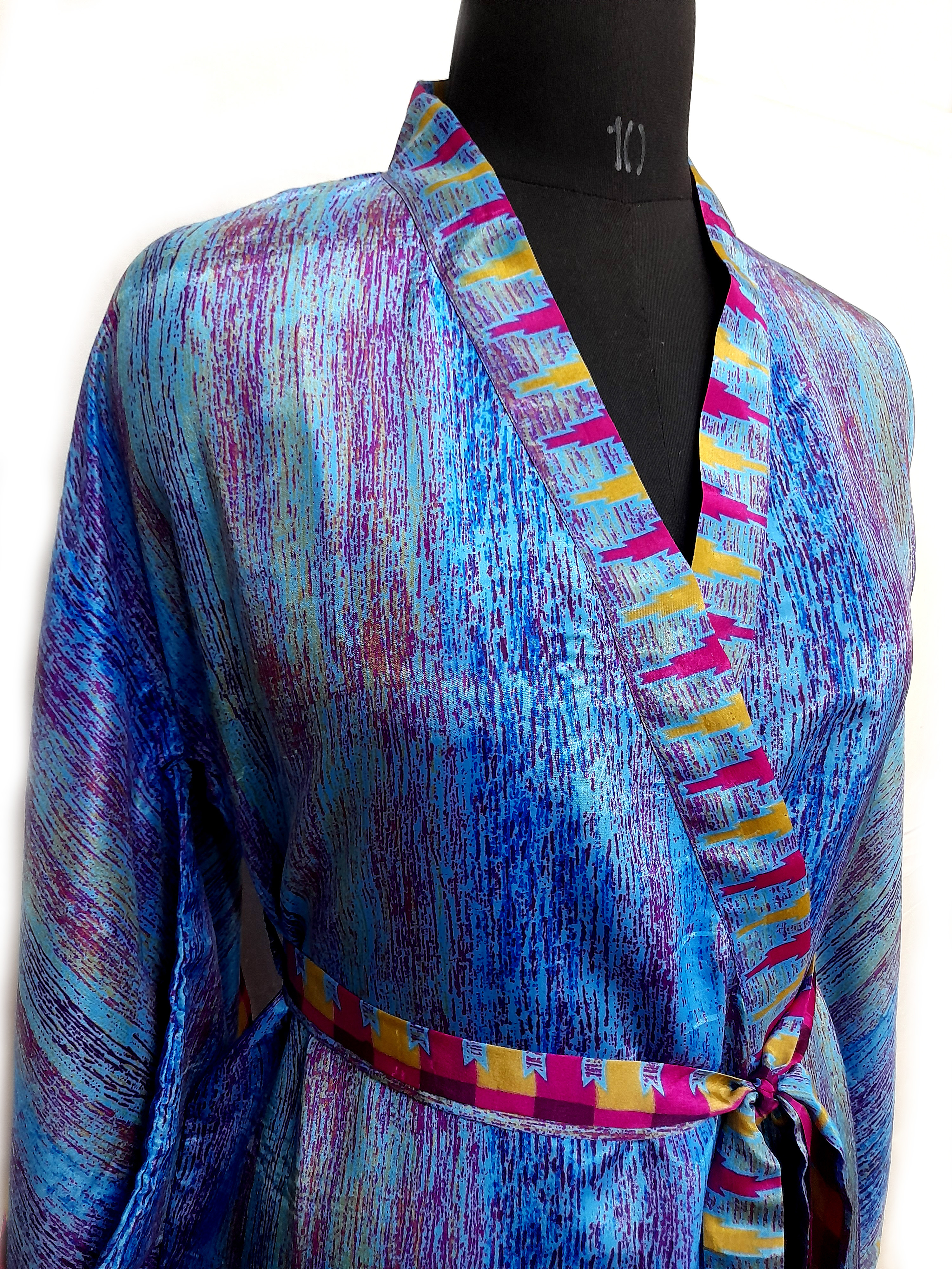 Lounge wear essentials with ethics . Stylish Kimono in Surplus silky blend fabric . Very Luxurious to Touch :)
