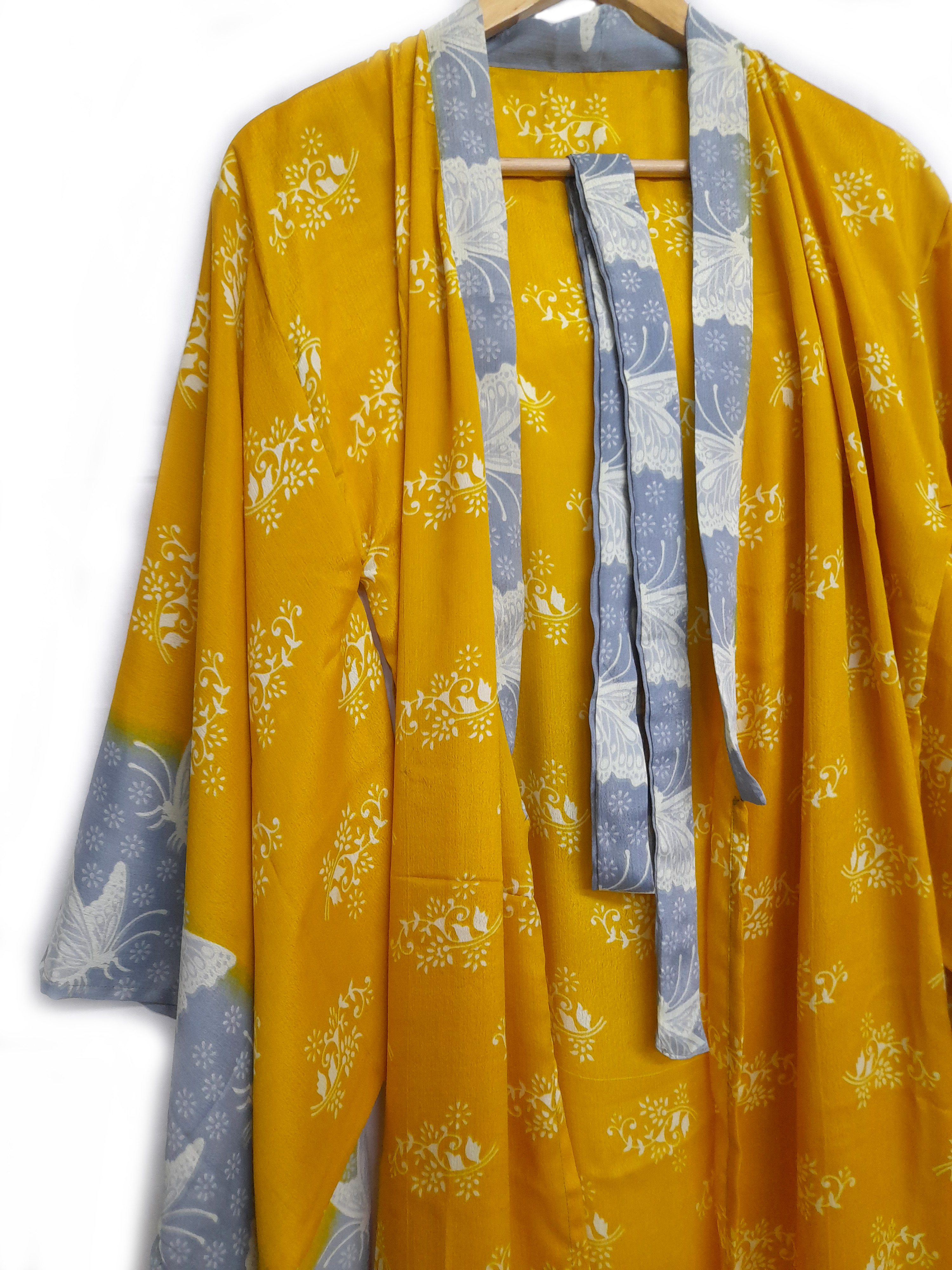 Lounge wear essentials with ethics . Stylish Kimono in Surplus silky blend fabric . Very Luxurious to Touch :)