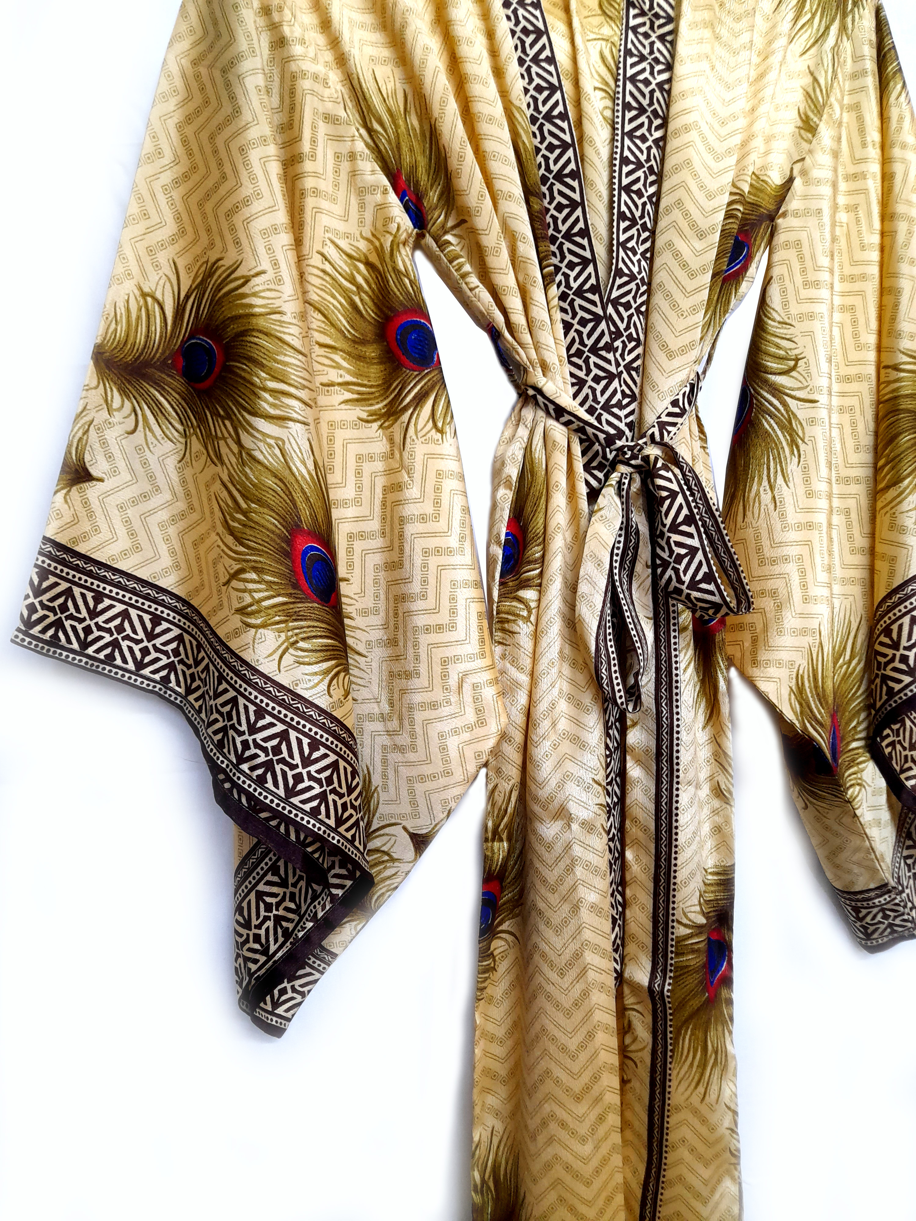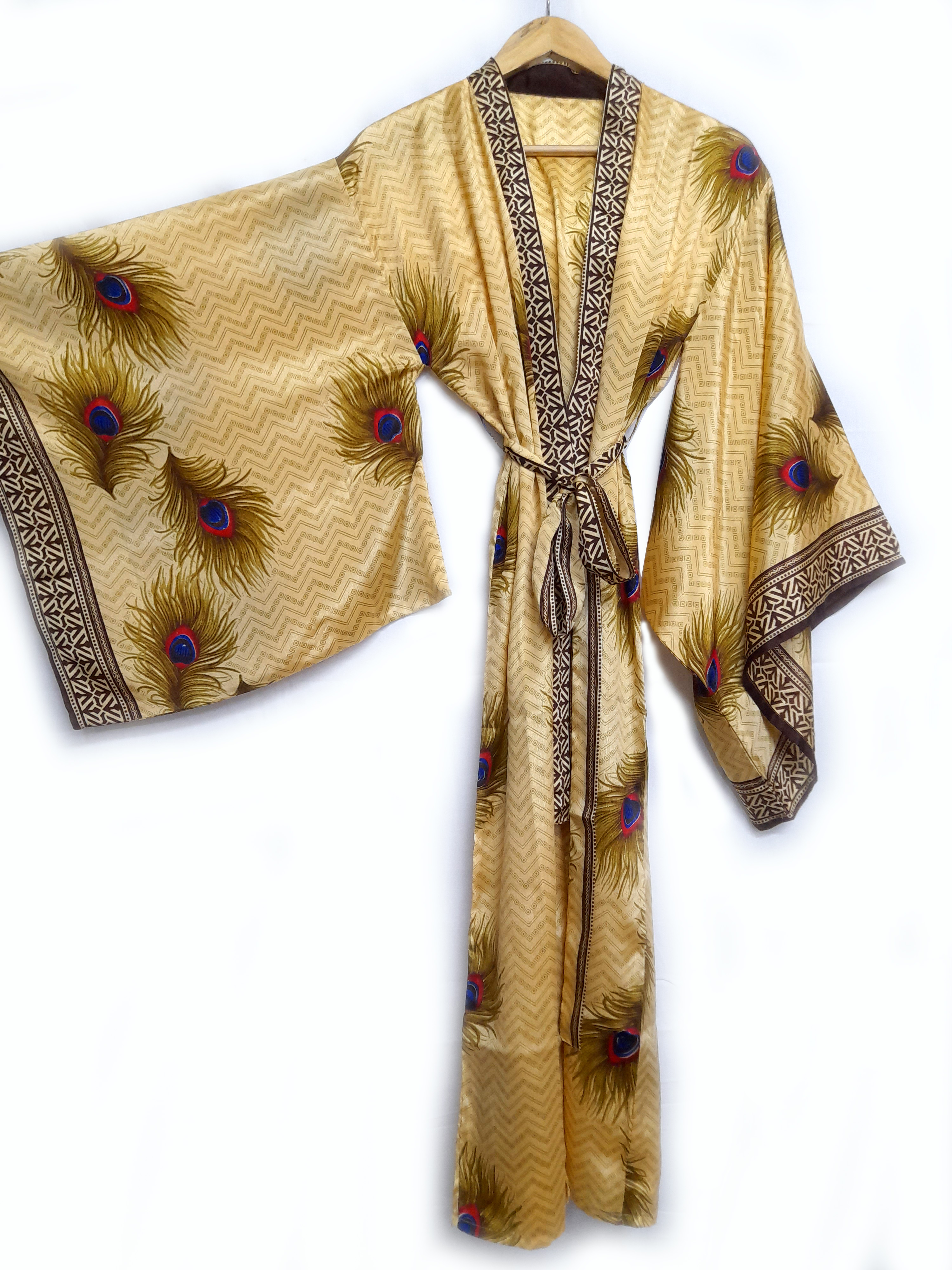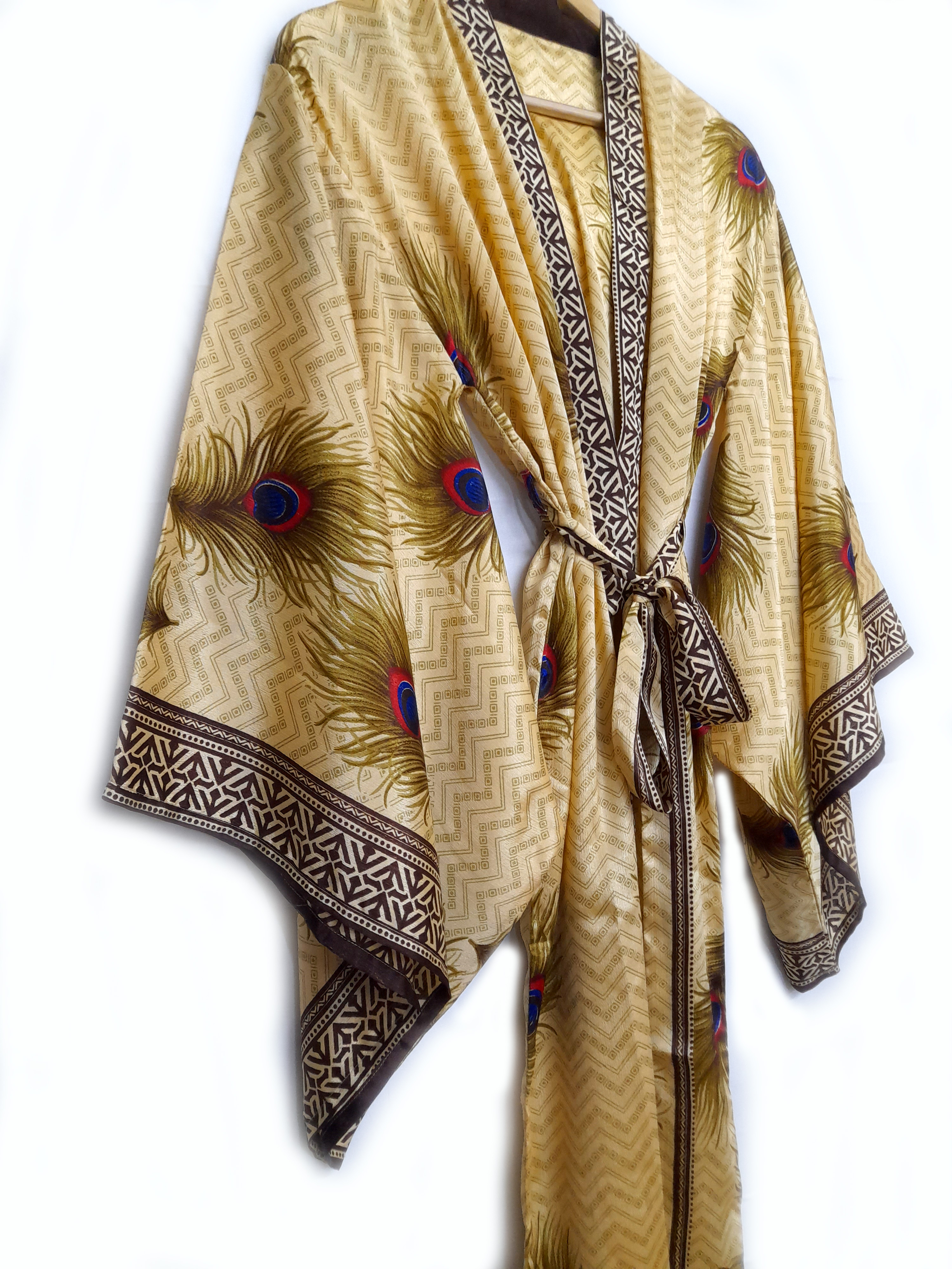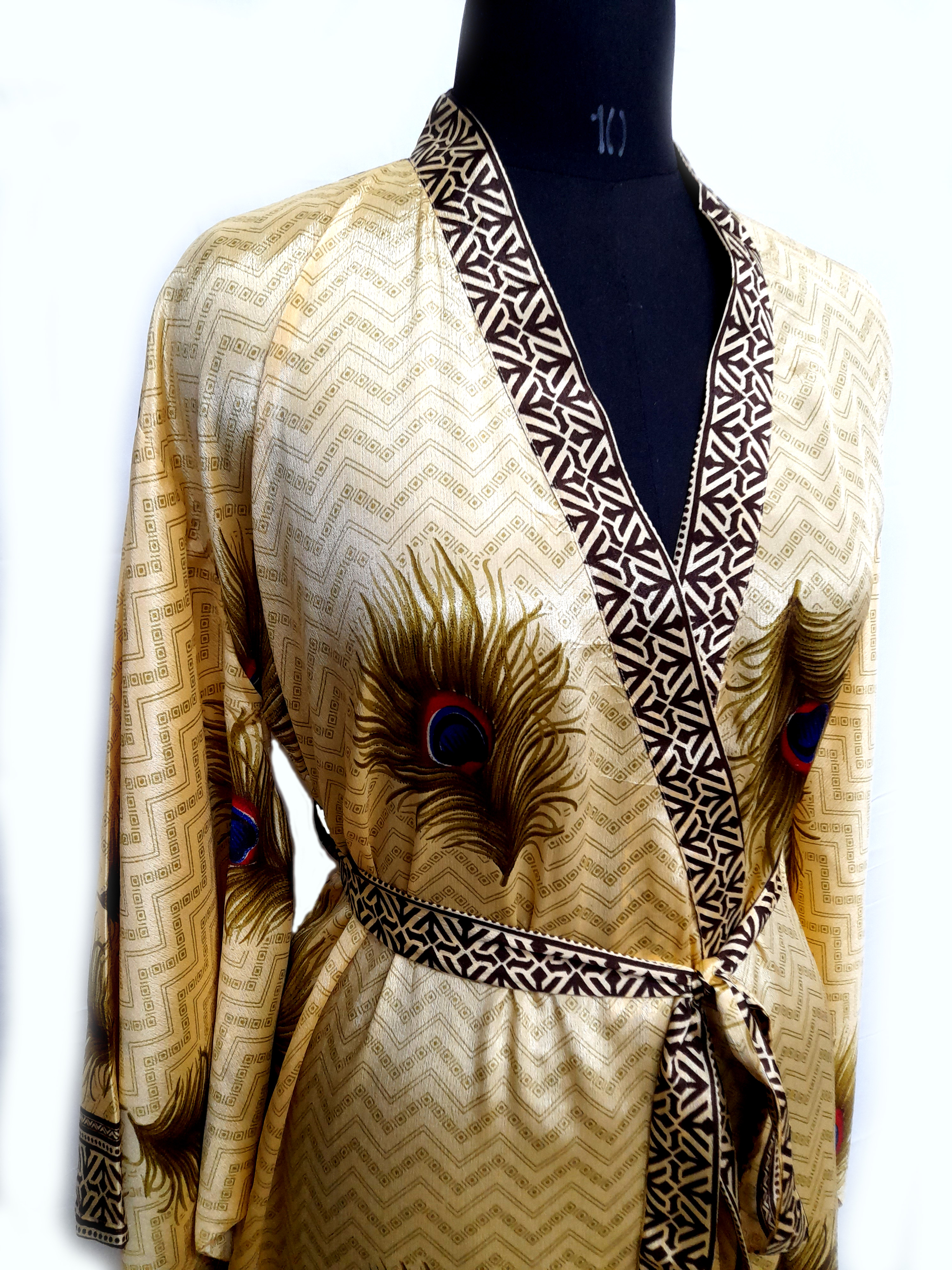 Lounge wear essentials with ethics . Stylish Kimono in Surplus silky blend fabric . Very Luxurious to Touch :)