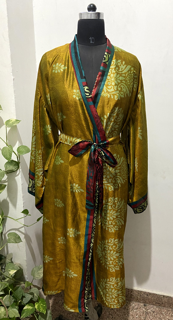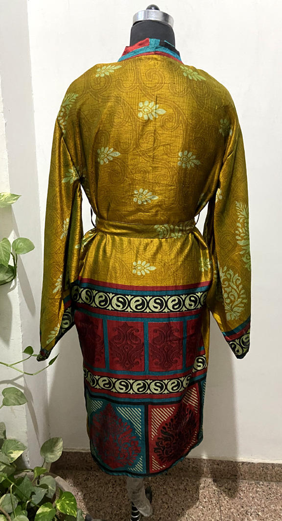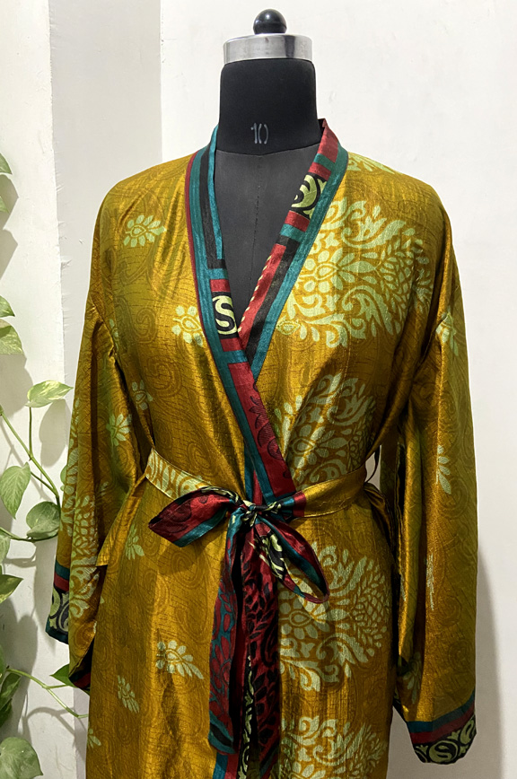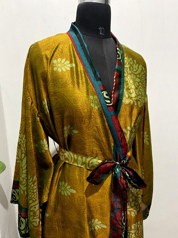 Note - These kimonos are made with vintage recycled silk saree so minor errors are normal like stains.